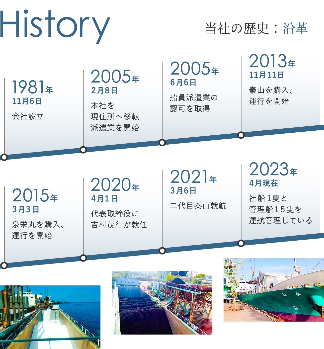 当社の歴史 | 株式会社広島シッピング | 船舶管理・船員派遣の2つの事業で安全航海をトータルサポート